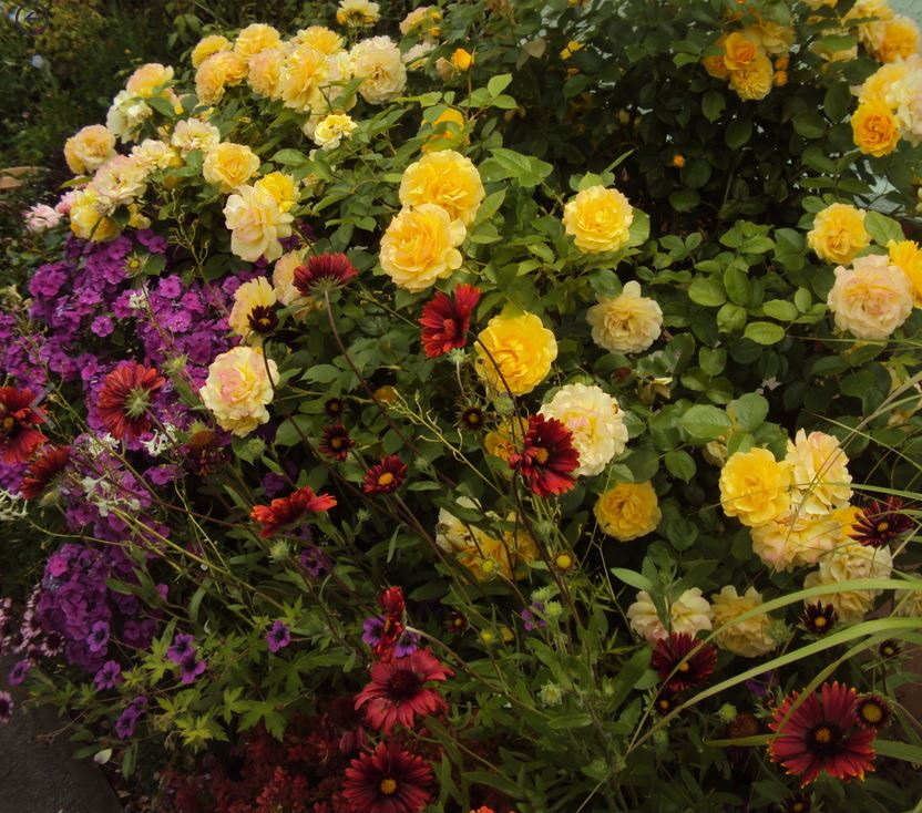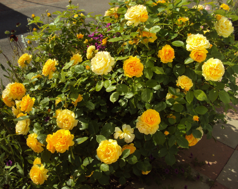 'Frilly Cuff'.. not as scented as Gabriel Oak, but much easier to grow.. 'Absolutely Fabulous'.. here 5 foot tall by 6 wide, taken from above.. scented of anise, continuous, great foliage, and just a non-pareil amongst yellow roses..
