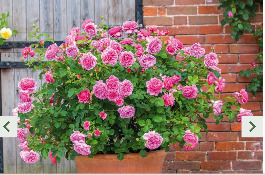 Incidentally, you do know that you can grow more than 1 rose in a pot for a few years, for a more floriferous result. DA do this but they don't shout about it.. This Princess Alexandra of Kent photo taken from their website, is actually 3 roses planted close together, and they've had them in that pot for 8 years, just replenishing the top soil each season...