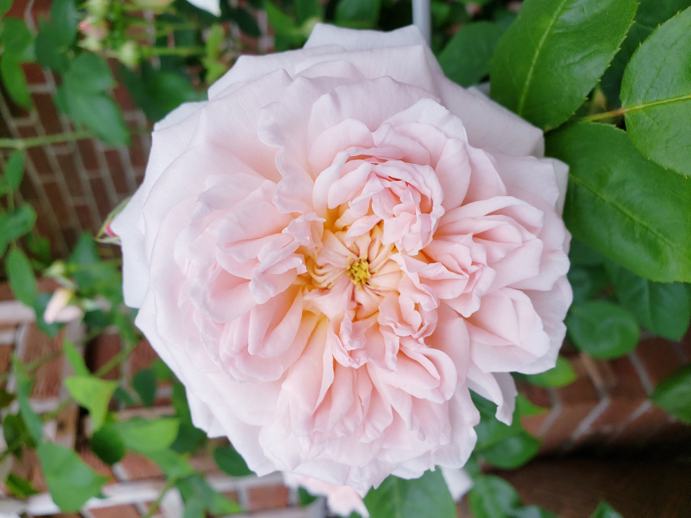 I love Eglantyne WAMS. It has the most delicate look of all my roses and the cutest button. This is in its second season and I don't know if it will get sturdier but I have needed to keep its stems in check with a support. I have it in a spot sheltered from wind and heavy rain because of the fragile look of its petals but may not be necessary. Health good. I know I like the scent but cannot recall of what. Not at its fullest flush but best I can find right now