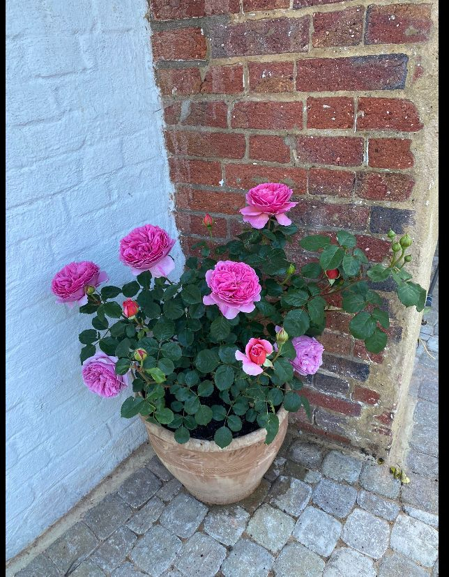 I experimented this year with some in a pot and they did really well in the season especially as both were bought as potted roses at the start of summer as appose to bare roots in Autumn. However, towards the end of the season they looked very unhealthy compared to ones of similar age in the ground. Here is PAOK in June: