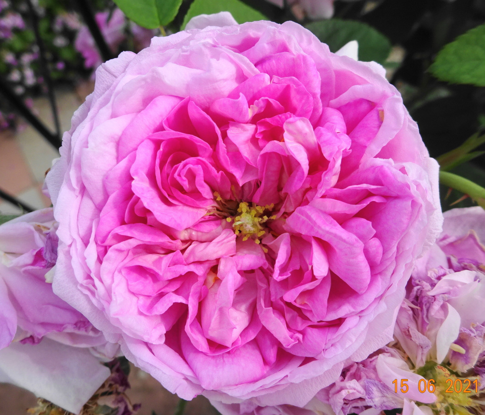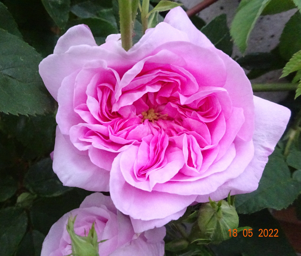'Queen of Denmark'.. [Konegin von Danemark].. bred by a Scottish nurseryman who lived in Denmark at the time.. Delicious fragance, and bloomed well for a few weeks in the first season. early blooms as with most roses, are not always typical. The first untypical bloom opened end of May, [semi double].. then early June a lot more typical blooms... flowered for about a month first year..