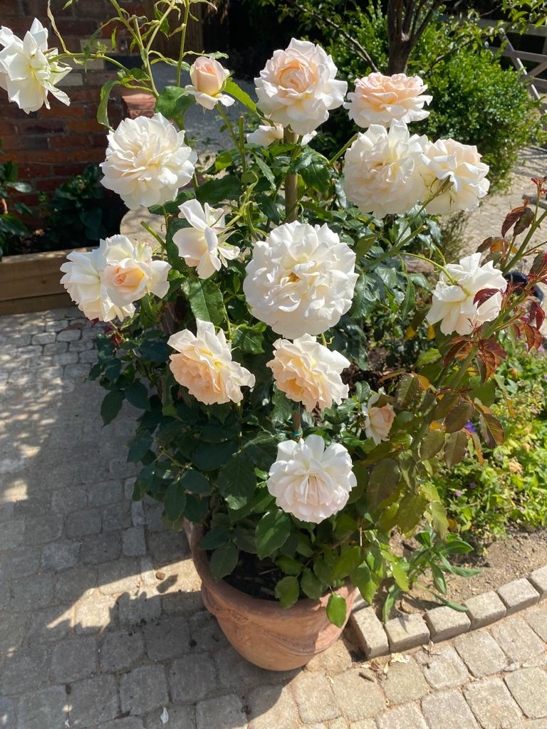 For anyone that goes for potted roses early summer and lives in/close to Herts I strongly recommend going to Harkness in Hitchin (they also have another one in Bedfordshire). I bought 6 potted roses from different suppliers this summer but the ones from Harkness outperformed all.
