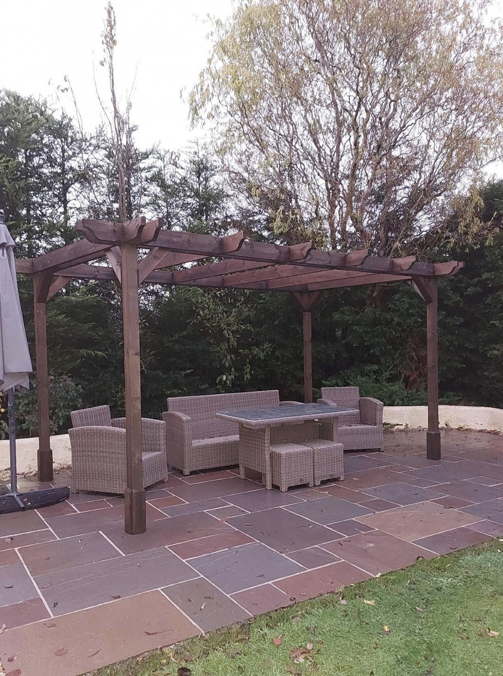 I live in South Devon so it’s fairly mild, my back garden faces North however the pergola is in the far corner which gets the sun for most of the day. The pergola actually faces East so will get the morning sun as well. I’m happy with any colours suggested as the backdrop to the pergola doesn’t have any colours that might clash, only greenery. I’ve attached a photo showing that at the moment it’s a complete blank canvas, the pergola will be moved forward away from our wall when we get some extra manpower!