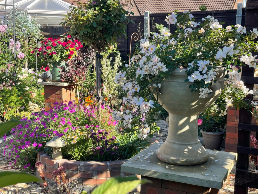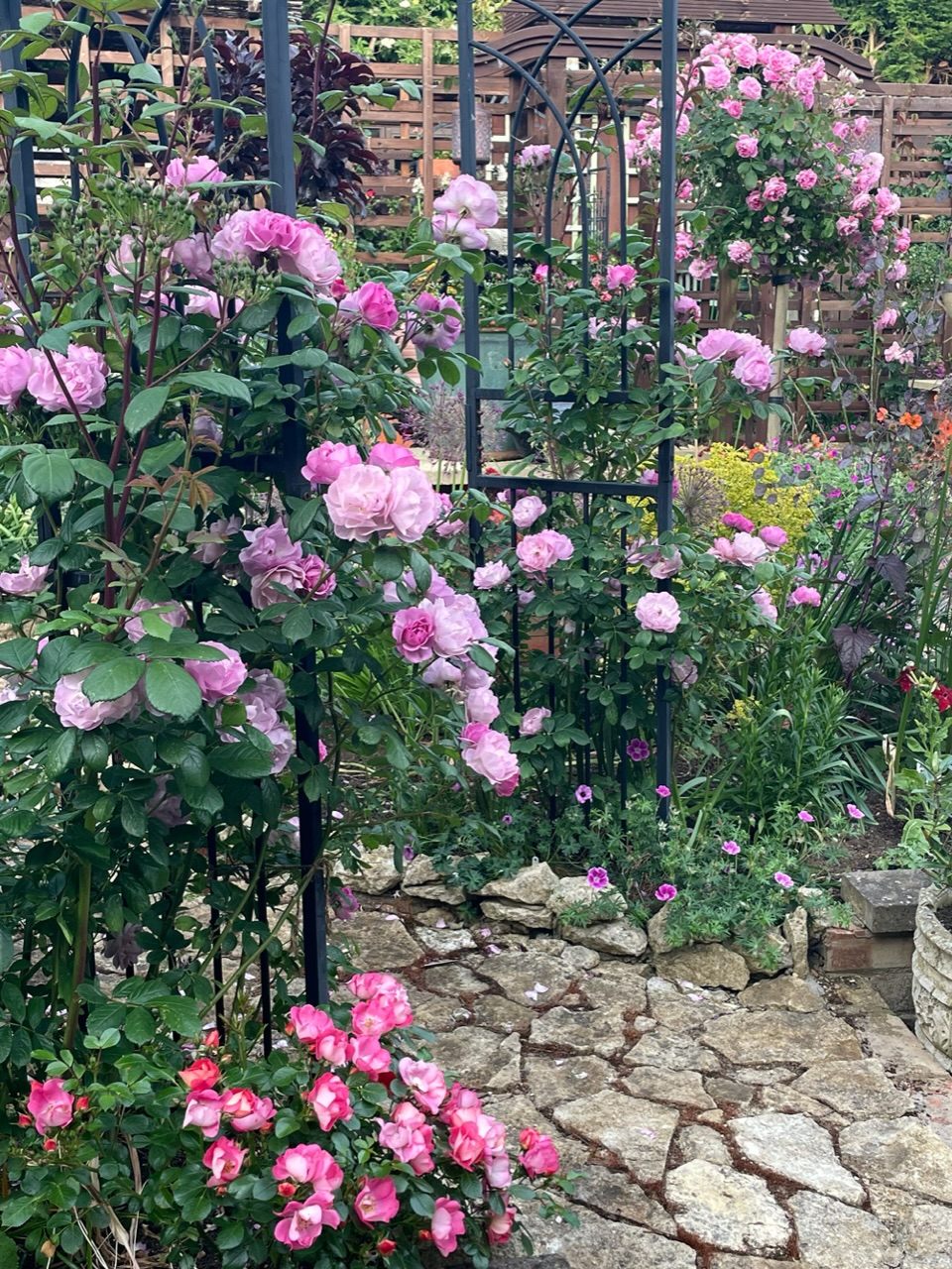 Lovely summery shots @pitter-patter, I always enjoy seeing your standards and I love your tumbling Medeo too. I’m hoping to achieve a similar effect with ground cover rose Avalanche Abricot in a tall pot, but it hasn’t put out any new basals in it’s first year so it’s a bit sparse at present.