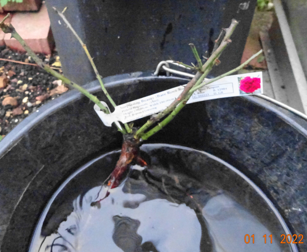 I had some bone dry bare roots delivered from Belgium last year, no plastic to retain moisture, just wrapped in a brown paper bag then in a cardboard box. Fortunately I was here and opened the box. I plunged them deep into a bucket immediately but did lose some brittle feeder roots, they dropped off and floated around in the water. I got there just in time I think, as the roses recovered. If I had left the box unopened for a week they may not have.
