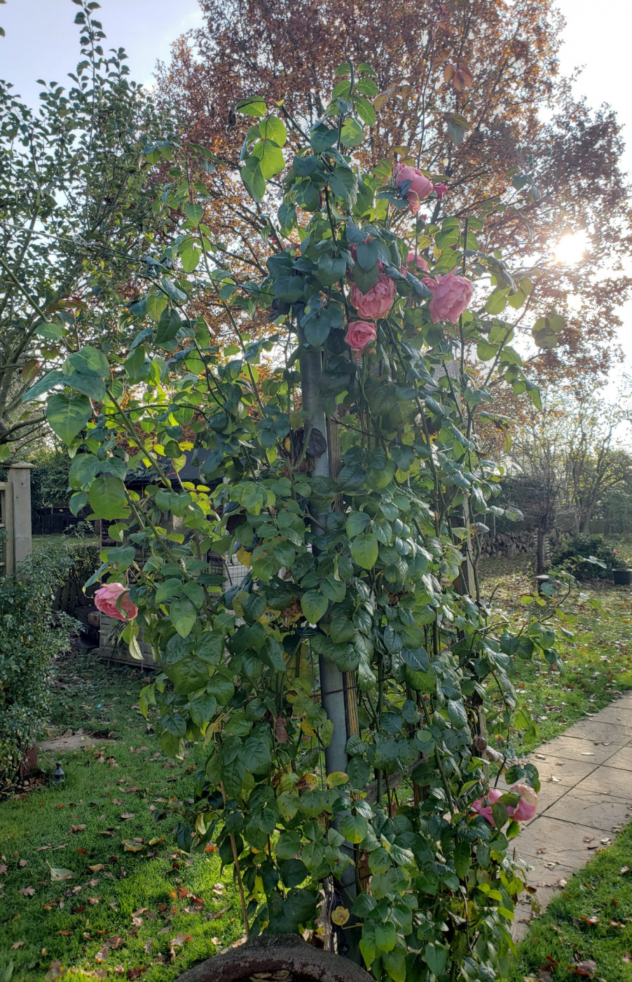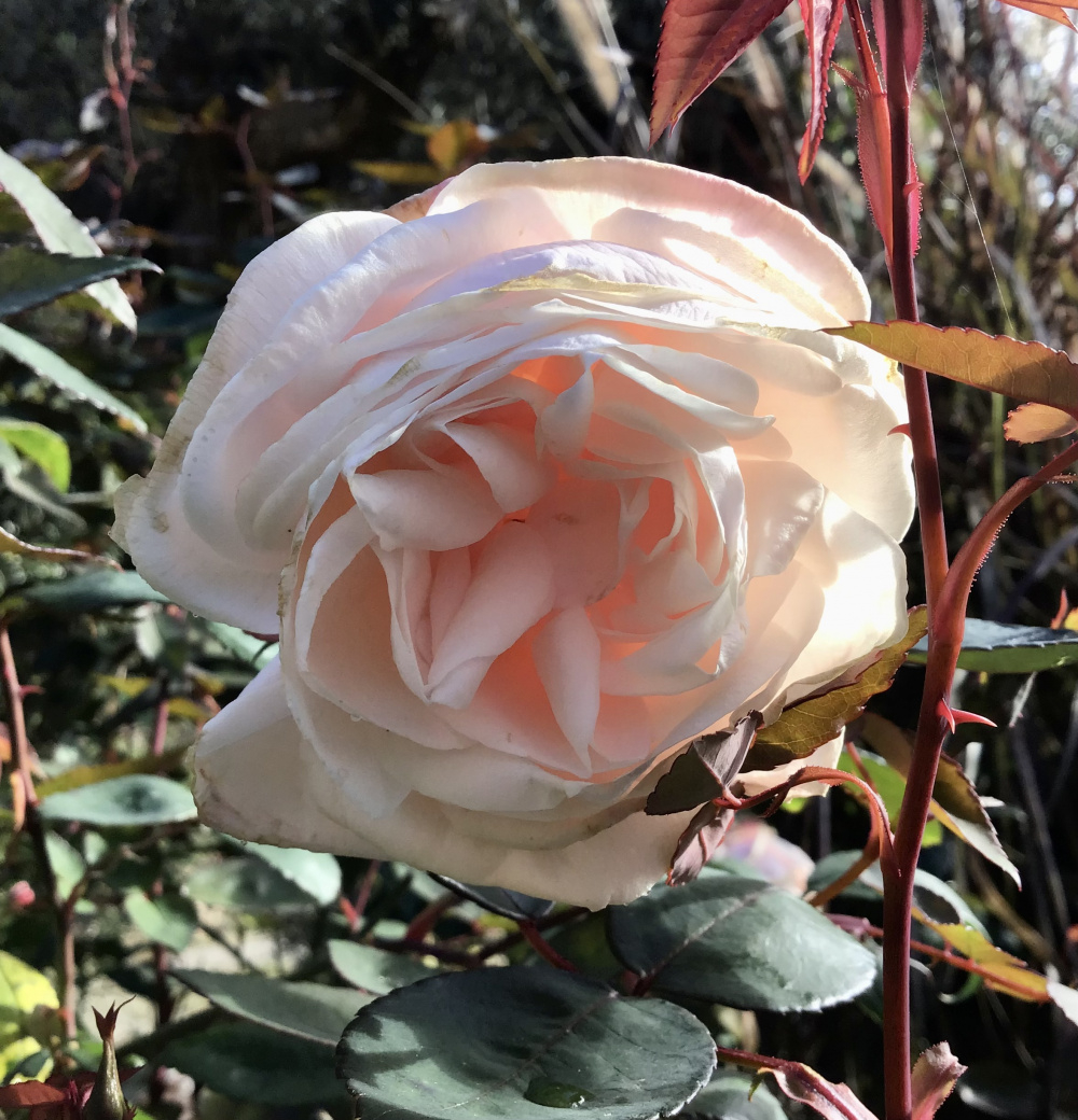 We are well into the frosty mornings stage with minus temperatures overnight, but some roses are continuing to put out new growth and trying to bloom. The big, many-petalled ones are not opening and going a bit mouldy..