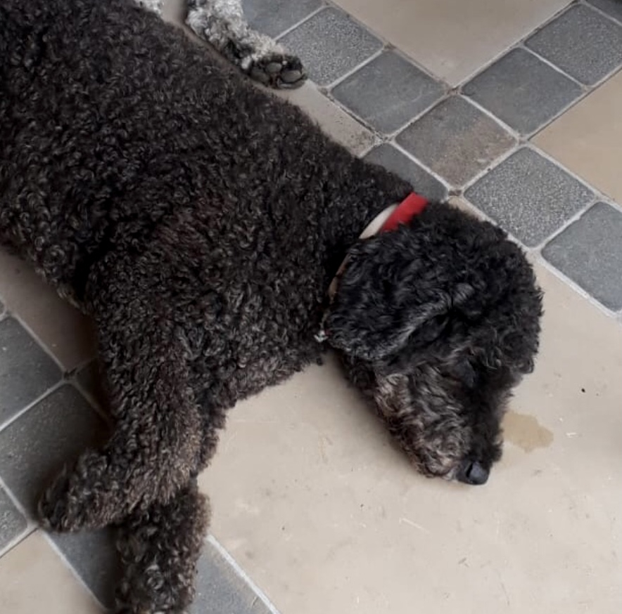 Haven’t got the energy to tackle Gertie yet, so the crime scene shots will have to wait, but here’s a quick pupdate. Typically for a female Spanish Water Dog she is developing a very strong, not to say bolshie personality! Smudge at 21 weeks: