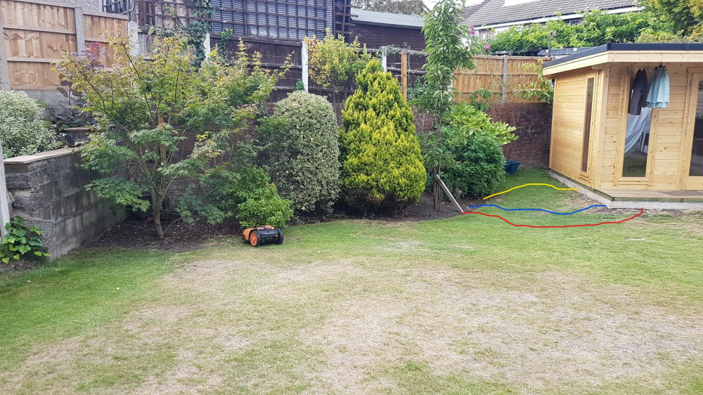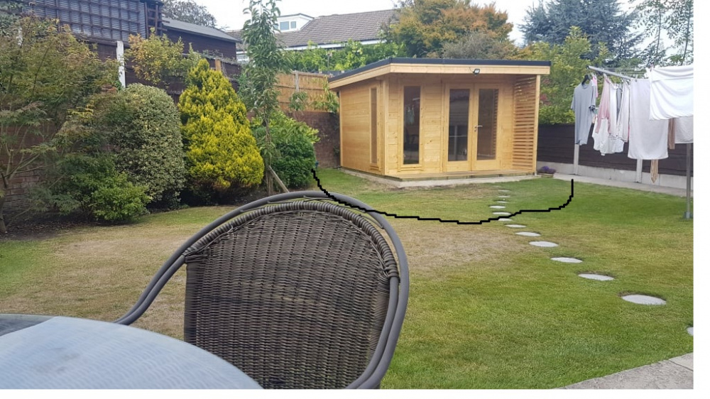 Revisiting this now I need to extend this border up to the garden cabin. Wondering about the shape of the border extension. Curved looks better than straight I believe. Which general shape would you take from the 3 lines below in pic?