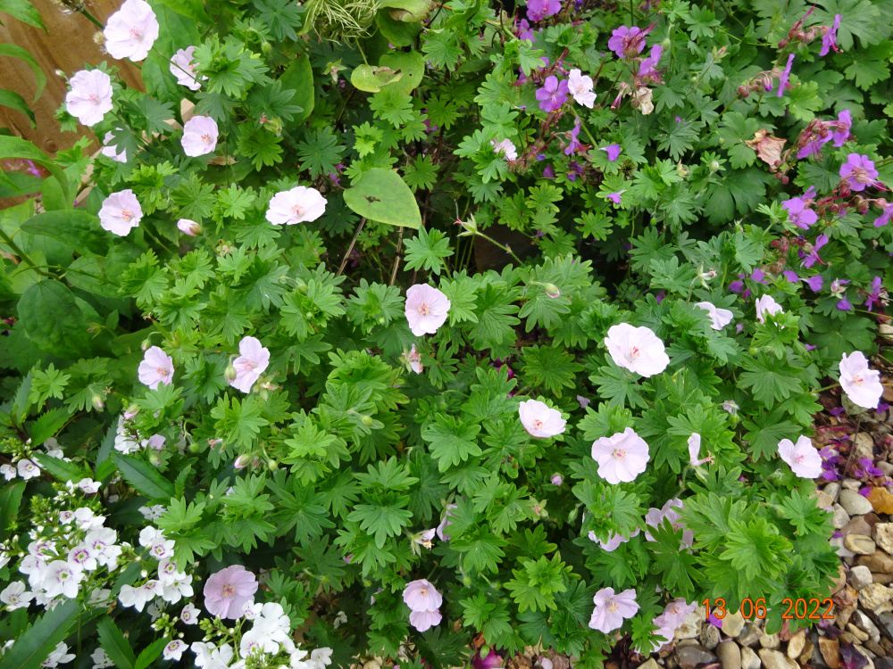G. cantabridgiense 'Biokovo' is an excellent 'doer' in my garden. It forms large almost evergreen clumps and has near white to palest shell pink flowers.