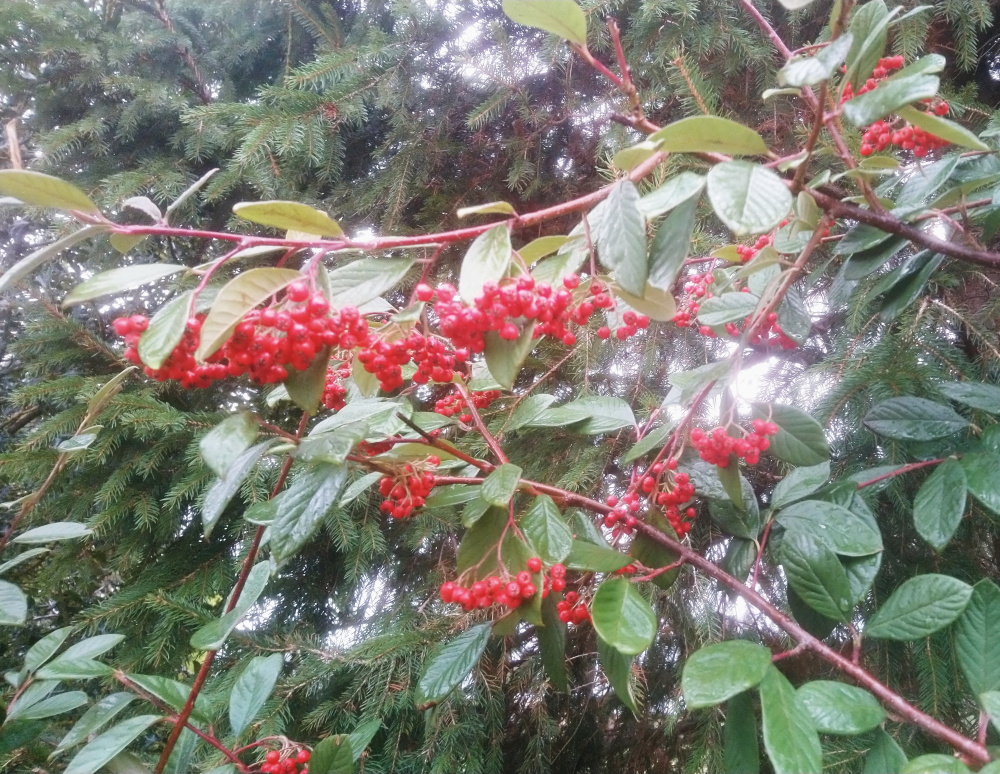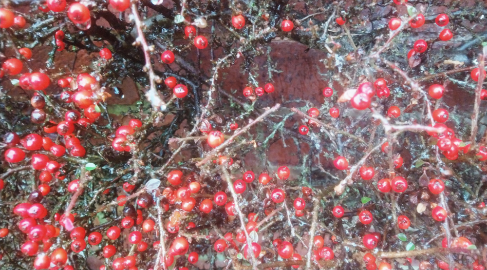 Various berried plants - mainly the big Cotoneaster and the white berried Gaultheria