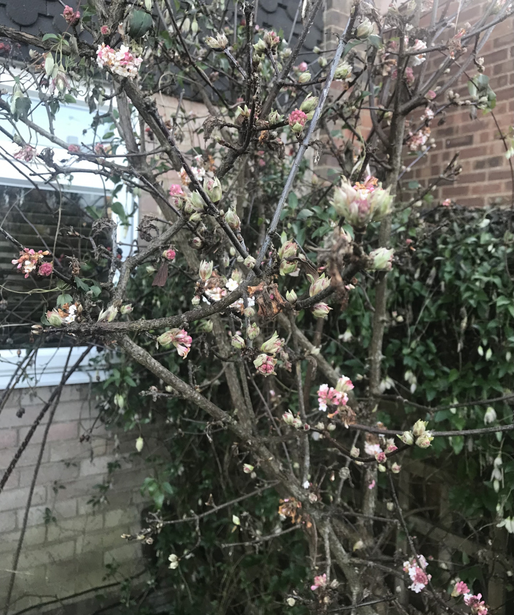 I've just been for a walk around Regent's Park and Primrose Hill. Plenty of mahonia in flower ( no idea which of charity or winter sun), some white chaenomeles (? thought was too early for them but I'm not sure what else it could have been ) . Didn't see any buds on the roses but they have been pruning them , most are defoliated.