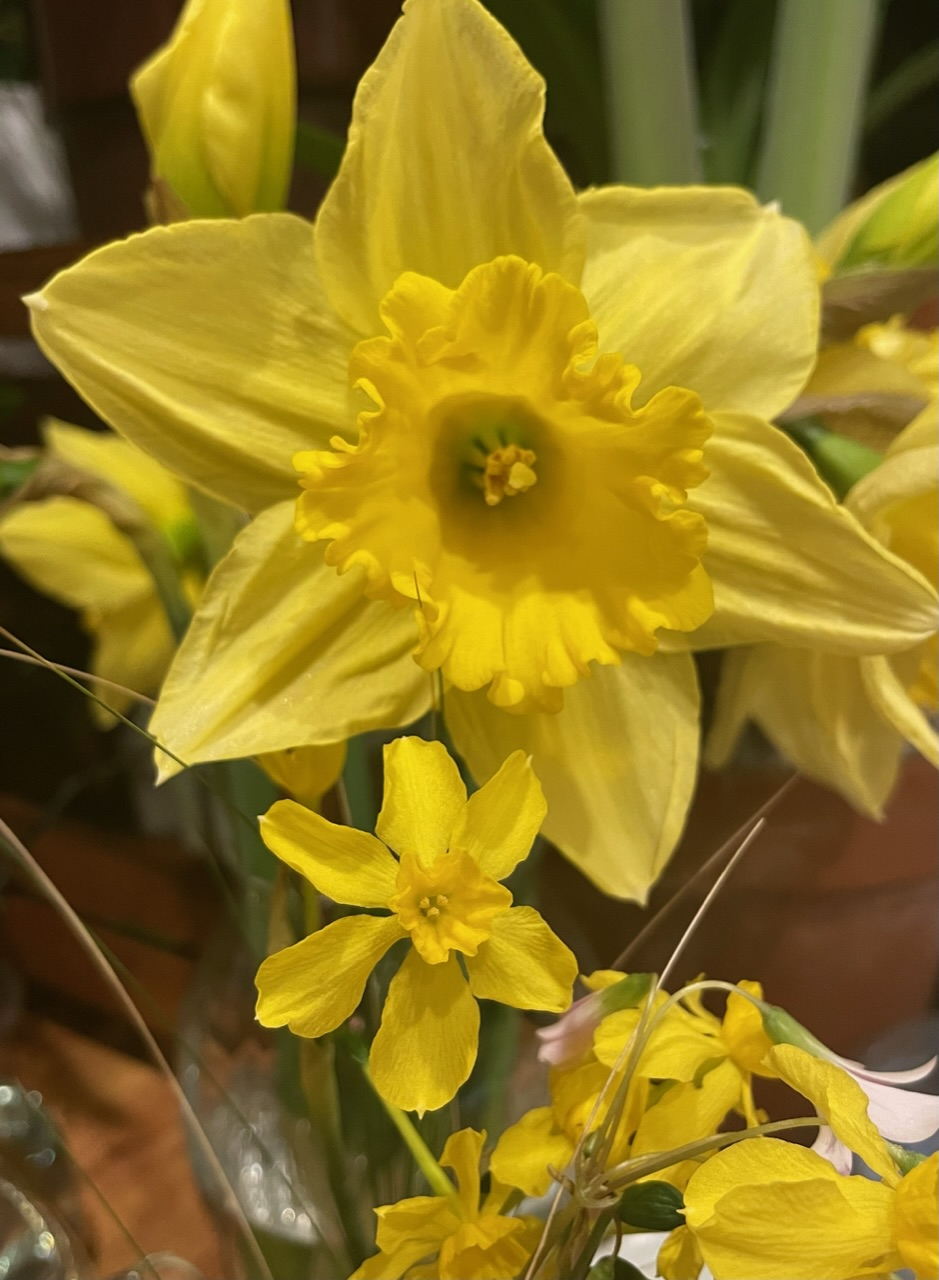 For anyone interested, cordubensis is a really small narcissus, but very scented. It grows to about 25 cm and has thin grassy foliage. Here it is, for comparison, next to a regular daffodil.