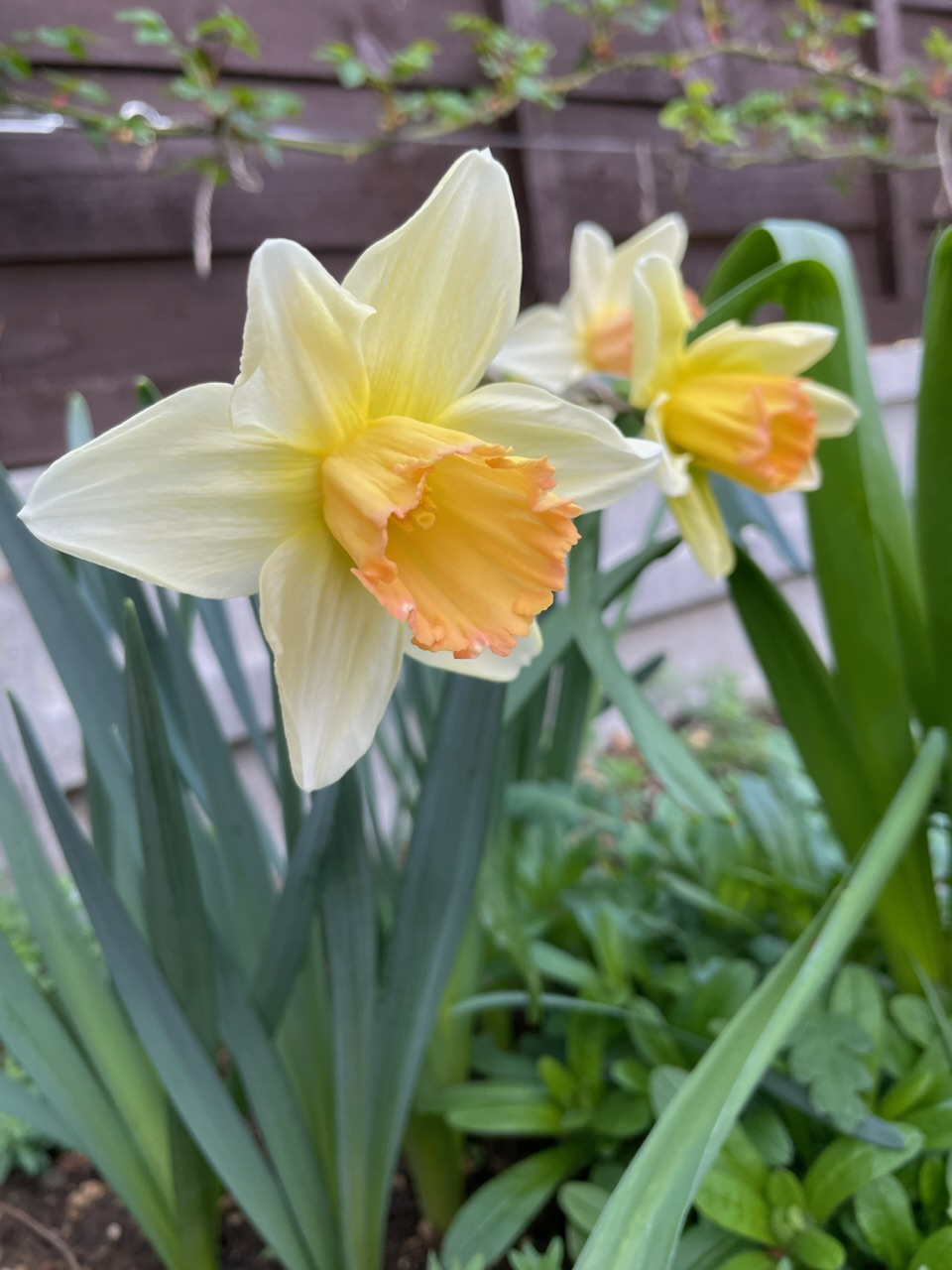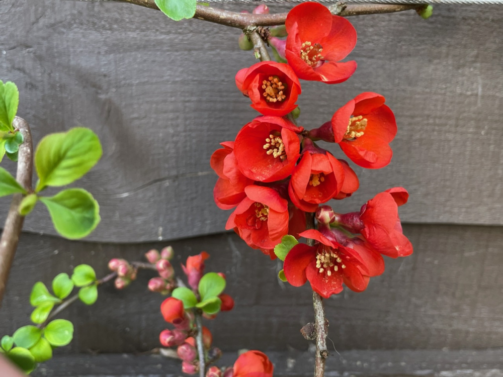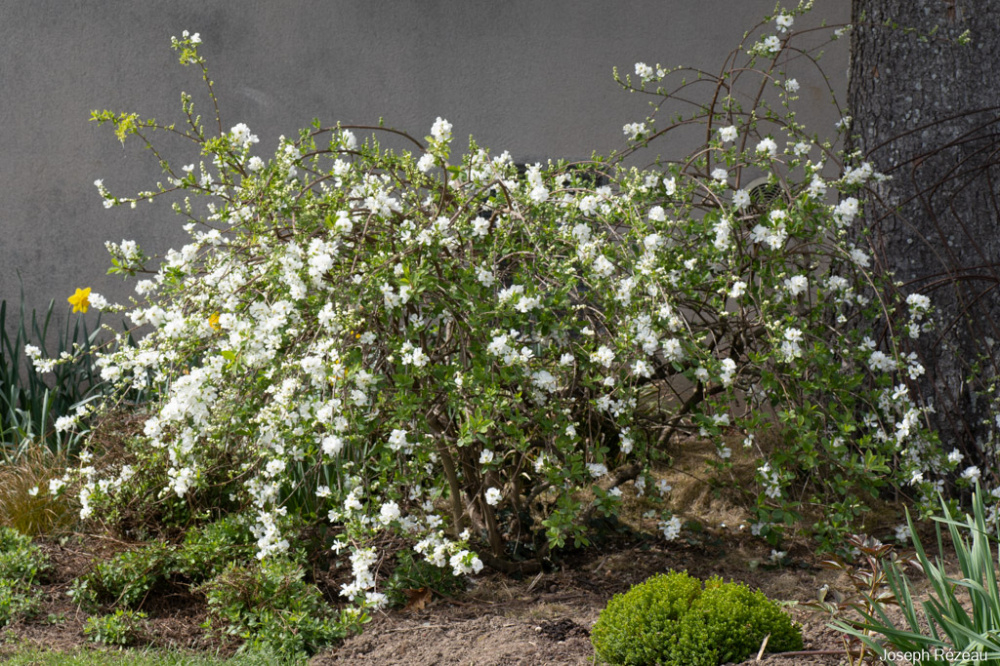 The Exochorda Serratifolia Snow White is at least 2 weeks late as other plants are later too due to the cold weather. It had white flowers last year at the same time.