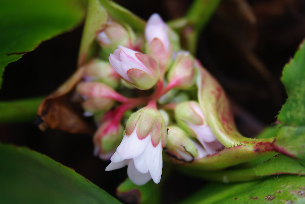 The Bergenia starts gradually flowering.