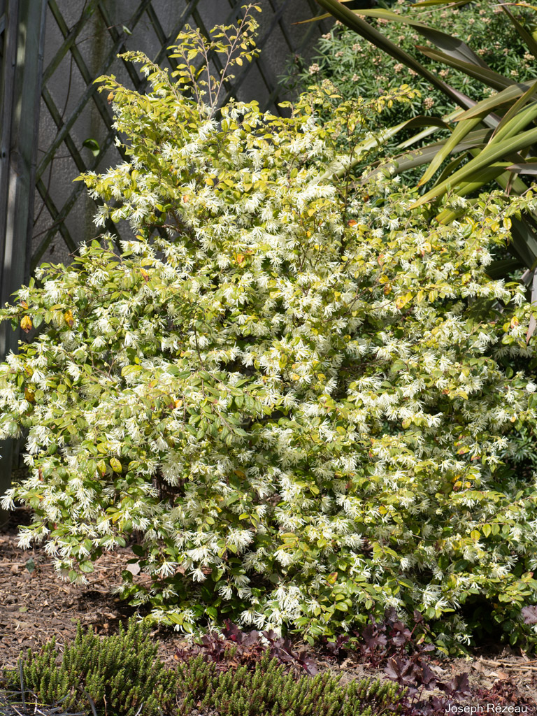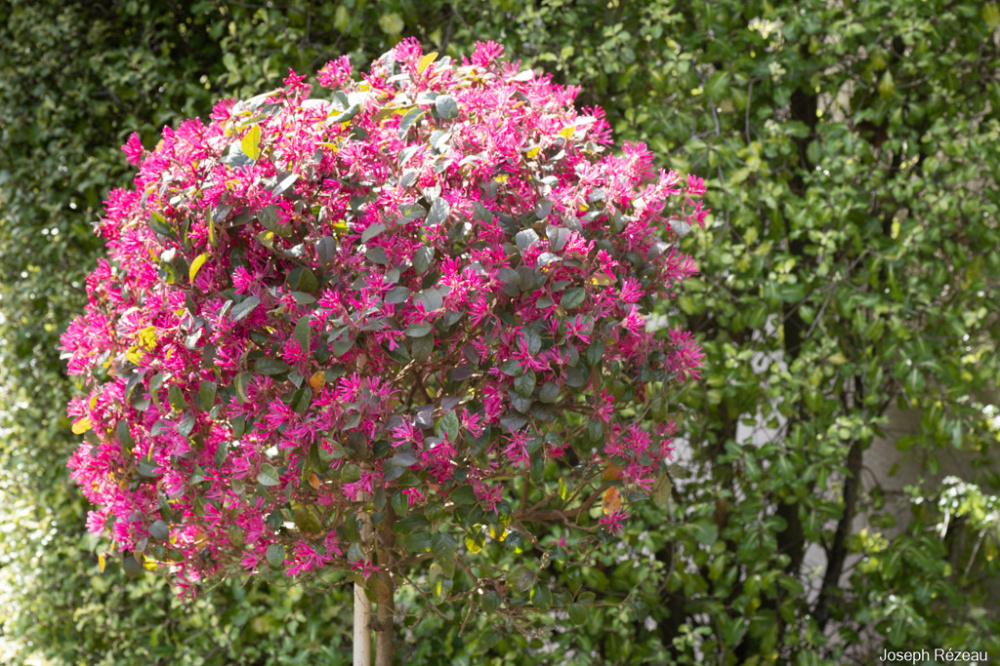 @SYinUSA I suppose you mean the pink Loropetalum? It's still fairly young, and get its regular clipping twice a year. The other one (with creamy-white flowers and light green foliage) has grown regularly but steadily and is hardly ever clipped.