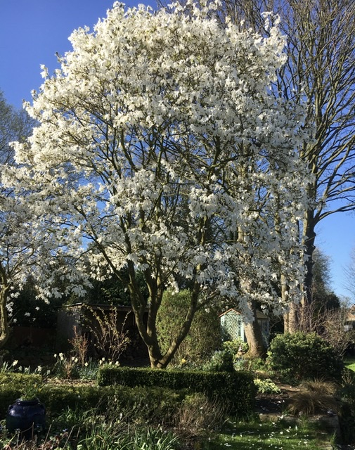 The magnolias in all their glory. Probably only a couple more days before they drop all the flowers so just enjoying this while I can.