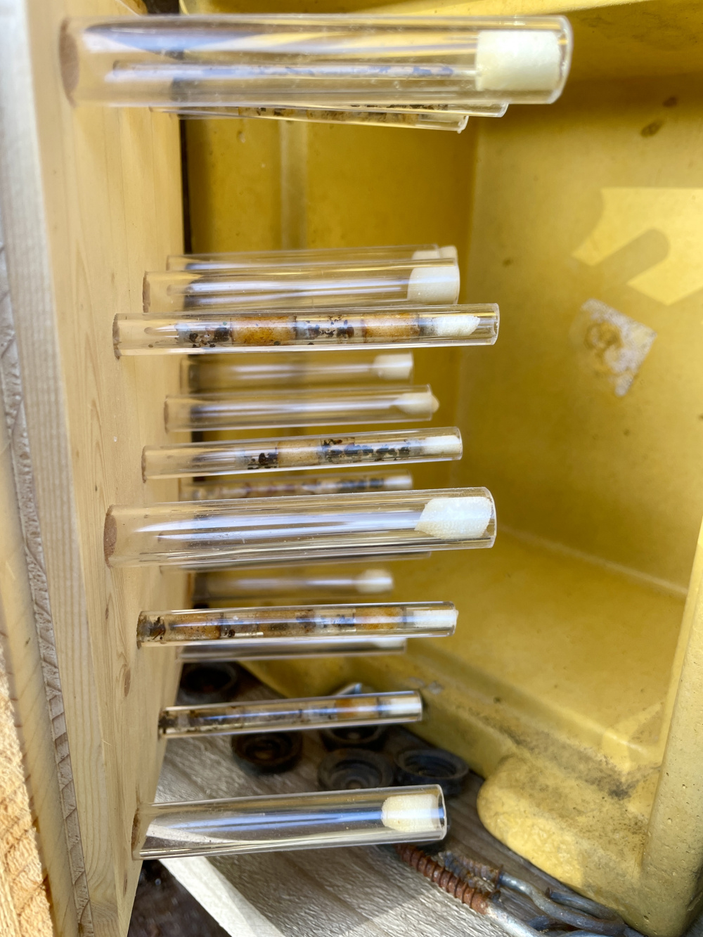 I've placed it in a log store near the house, it got used last year and currently has a few of the tubes blocked up with mud, inside are eggs/larve of some insect, no idea what..