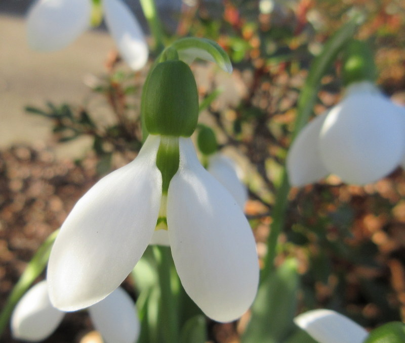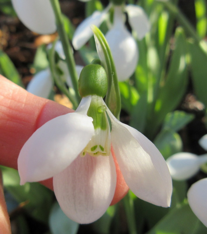 Just purchased Galanthus Polar Bear at a local nursery. No flowers just six bulbs that look as if they will flower. Will post a photo if they do go on to flower they are said to be outward facing and very late flowering.
