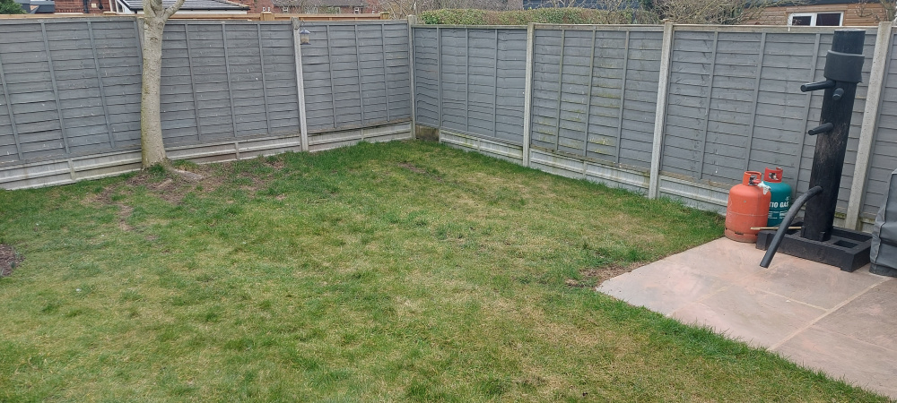 - Our idea is to extend the flower bed from the left-hand side, along the back fence.