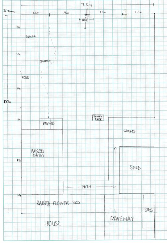 - We will keep the border on the left. We plan to leave the buddleia, rose and skimmia where they are, but could move/divide the other plants.