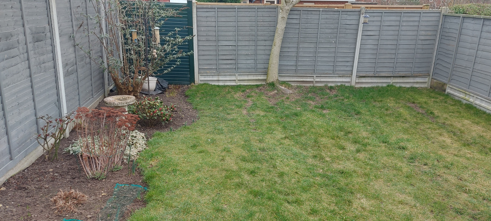 - The left-hand border is south facing and gets sun until around 3pm when the sun moves behind the house.