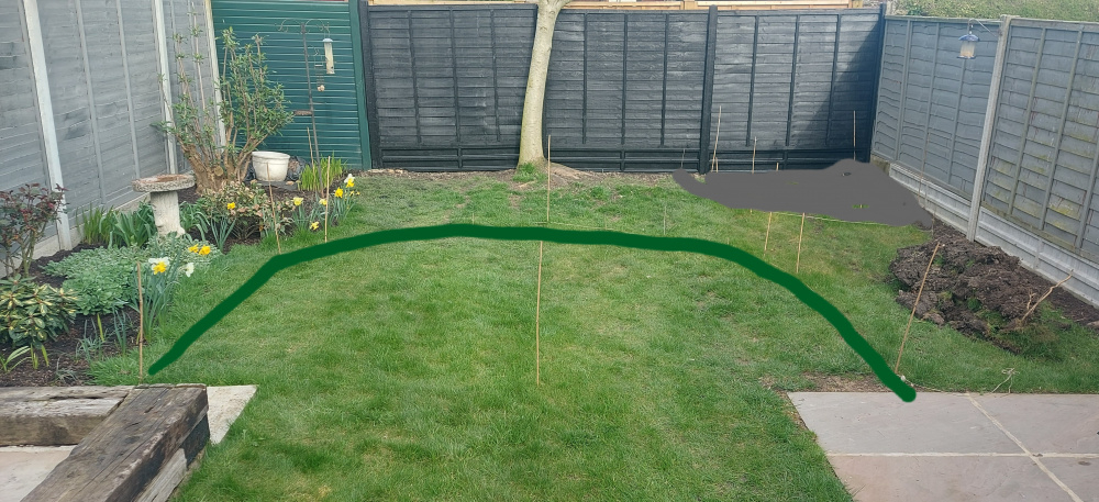 I think we need to start with getting the boundary marked out and maybe using canes to get a sense of if we've got too much or too little planned. Then we can start digging the border, getting the paving in and the section for compost. After that I think we'll get some of the bigger trees/shrubs and go from there. Should give us time to bolster our garden fund too.
