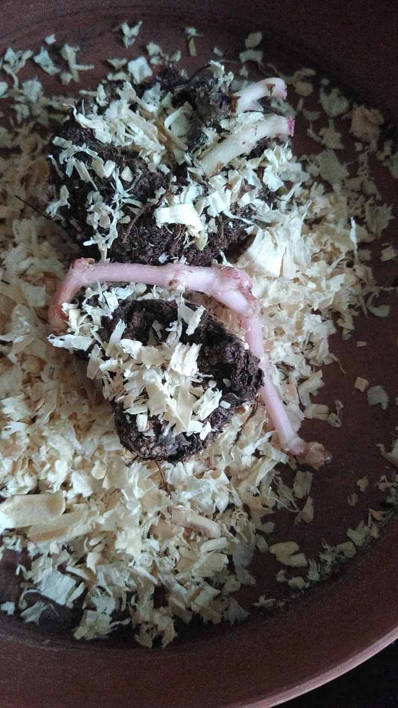 Hi I don't know much about trailing begonias, I lifted them after they finished and stored in wood shavings for winter. Checking on them today some of them have grown shoots do I remove them before I start to grow indoors or make sure they buried or pot them with corms buried and shoots exposed?