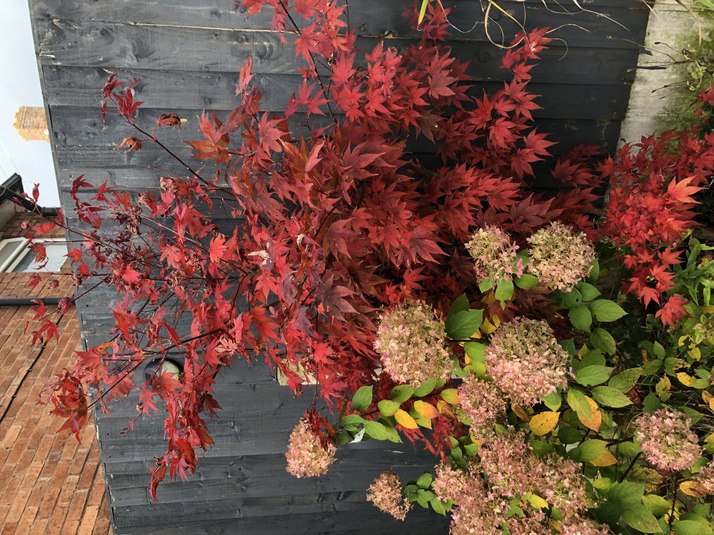 Most of the reds have great autumn colour, and the summer colour is dictated quite a bit by the site and the amount of sun they get. They're greener during summer when in more shade, which ties in with the hydrangea as they like a fair bit of shade .