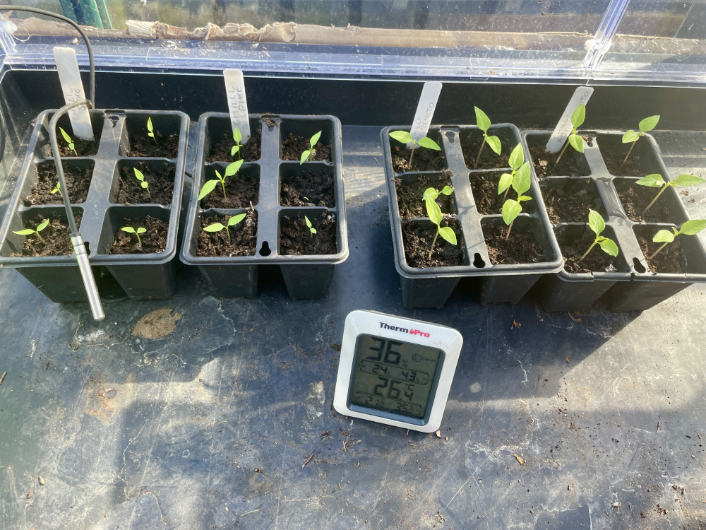 Well they have all germinated, all but one, but there is still time I guess. I have lowered the temp to 22 degs, though I have to take the lid off the Vitopod most days as the temp soon shoots up in the greenhouse.