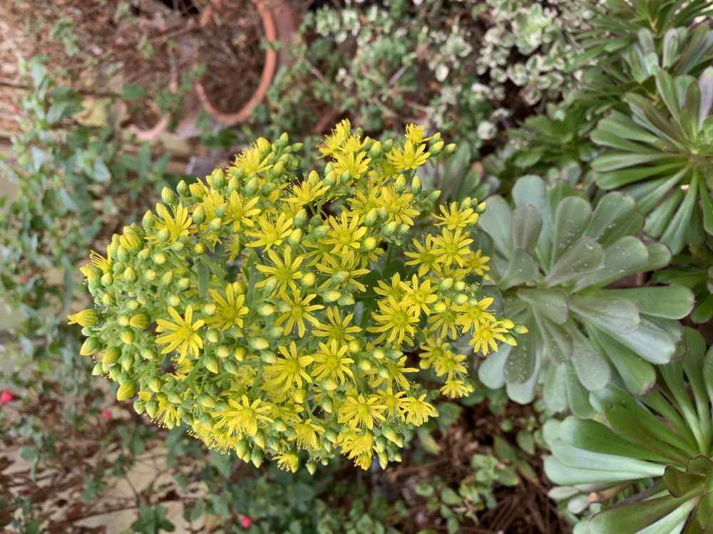 Does anyone have an Aeonium plant that has flowered beautifully like this one of mine? Sorry but cannot rotate pictures