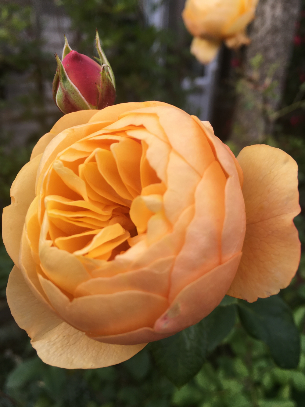 I have not grown Roald Dahl, but Dame Judi Dench has the most vicious thorns, rather flimsy petals and will want to grow as a climber.. what I liked about it most was its tarry scent, which not everyone will enjoy, rather like coal tar or diesel, - I love this smell, strangely perhaps, which is due to the organic compound phenol found in some roses, which is also an extract of coal tar.