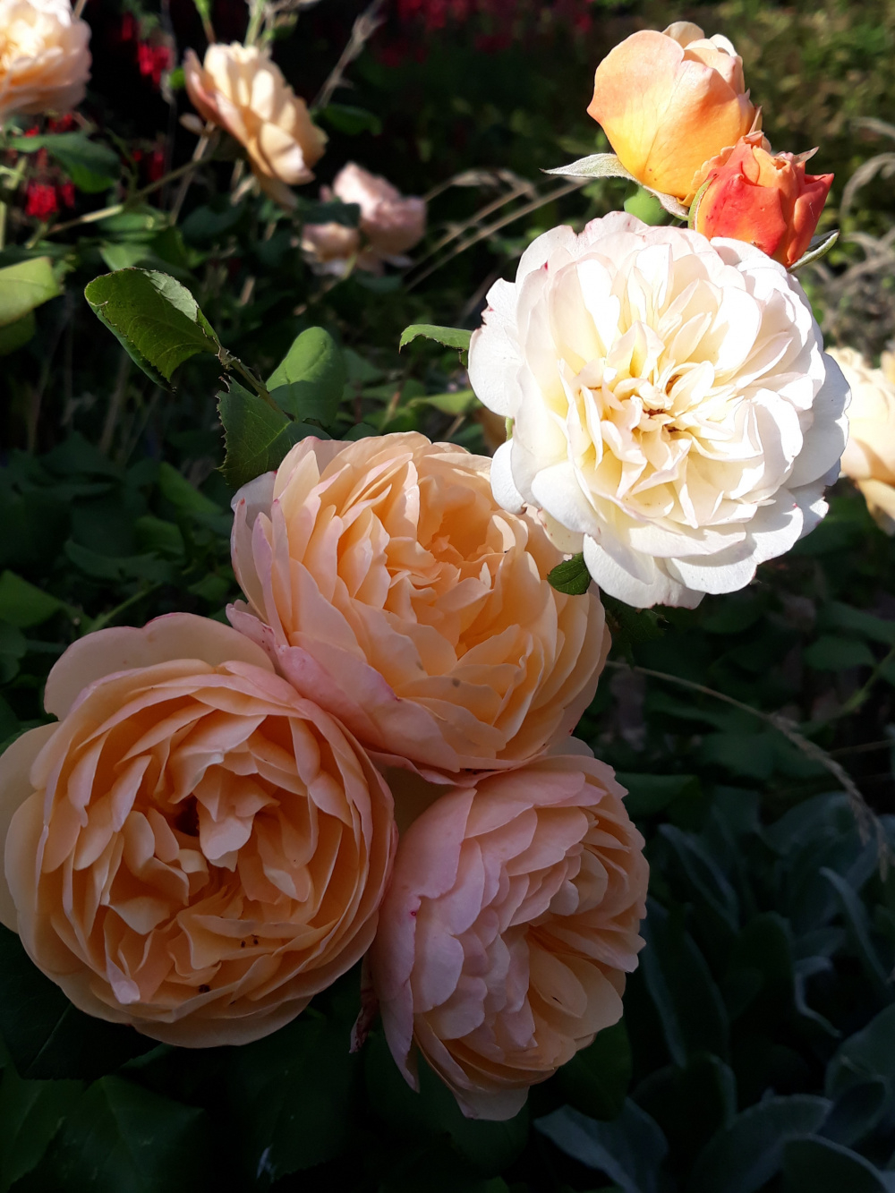 Roald Dahl I find very sturdy with lots of strong growth. Quite healthy, with only light blackspot late in season for me, Grows to around 1.0m, very floriferous with quite a variation in colour of bloom as they age. It is a very shapely shrub making it good for a pot. Unfortunately no fragrance for me too though.