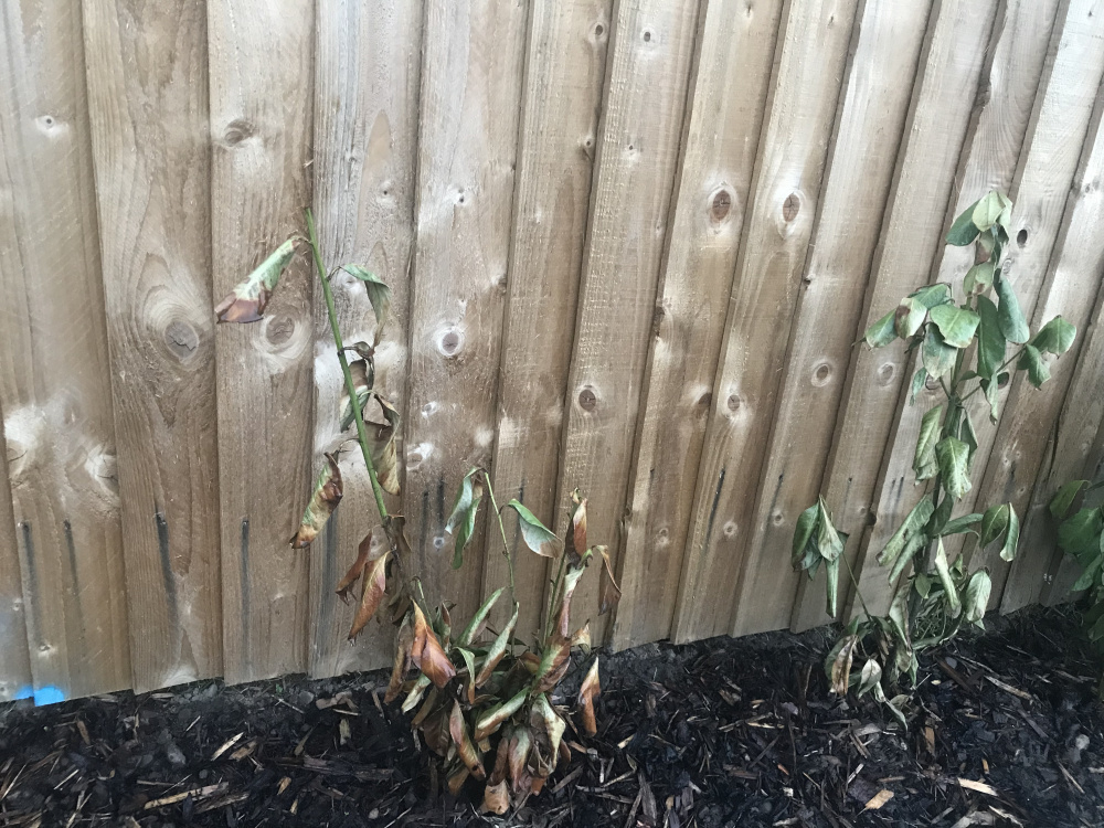 Hi all, I planted some bare root laurels bought from a nursery at the beginning of February. I planted them the same day they arrived with lots of compost, some fish, bone and blood, and have been watering them every 3 days or so since. Two weeks after planting them they starting to droop, some have brown dead leaves and they just don’t look very happy. I’ve contacted the nursery who are happy to replace them and for me to try again but I was wondering if anybody knows whether I can save the ones currently in the ground? We did have some cold winds which I think has effected them unfortunately. I’m wondering whether I remove all of the leaves and prune back to encourage new growth when the weather warms up. Only issue is with that, I assume the ones that are ok would be 2-3 ft and the ones stripped of their leaves and cut back would then not catch up to the others and I would have an odd looking hedge. Any advice welcome. I’ll attach some photographs.