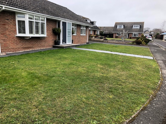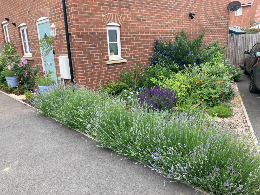 We have a bungalow on a corner plot, which has a large wrap round garden. the estate deeds does not allow us to put up fences, grow high hedges or build walls to close in the front garden. I am looking for ideas to edge the garden to stop people walking across the lawn. The perimeter measures approx 50 linear metres. Can anyone recommend a low growing shrub which would make a soft informal border and would not cost a fortune.