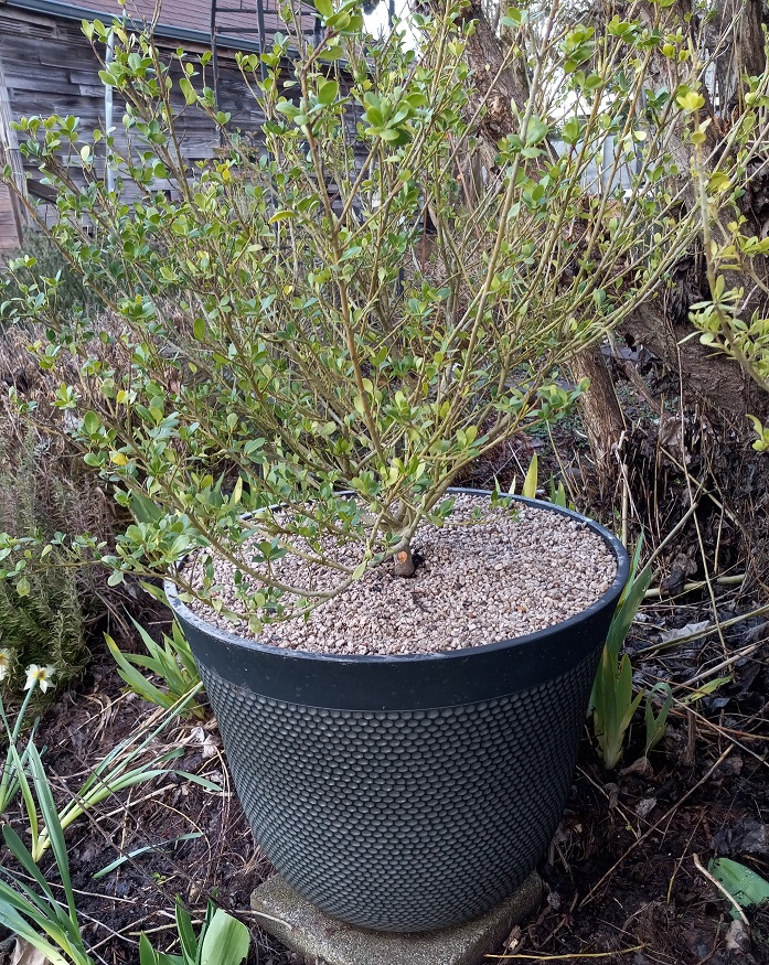 Also, I found an article in “The Spruce” (about potted Japanese hollies) that said, “Choose a container that is at least 8 inches wider than the root ball of the plant to give the shrub room to grow for the next two to three years before repotting the plant to a bigger container.” That's a much larger gap than the normal 1 or 2 inch recommendation, but about right for my situation. Japanese hollies are quite hardy here, so fingers crossed.
