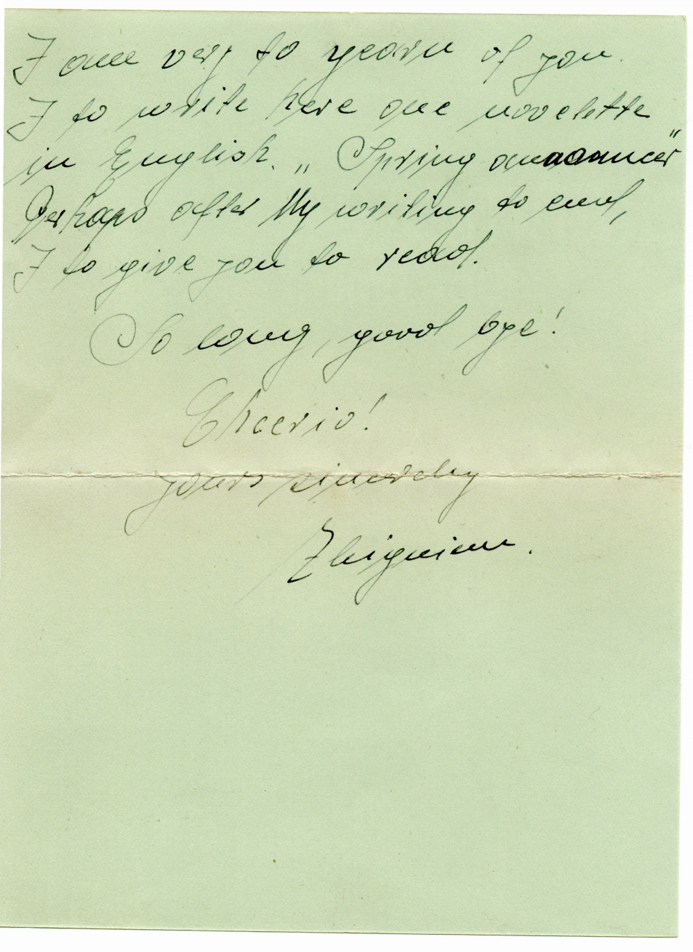 I do give you a good read ____ good buy! Cheerio! Yours Sincerely _____
