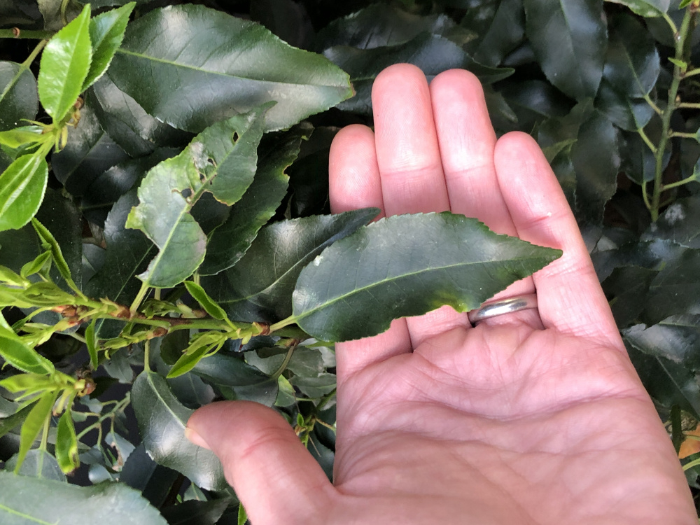 Please can you check. Do the size of leaves on mystery shrub match with description below