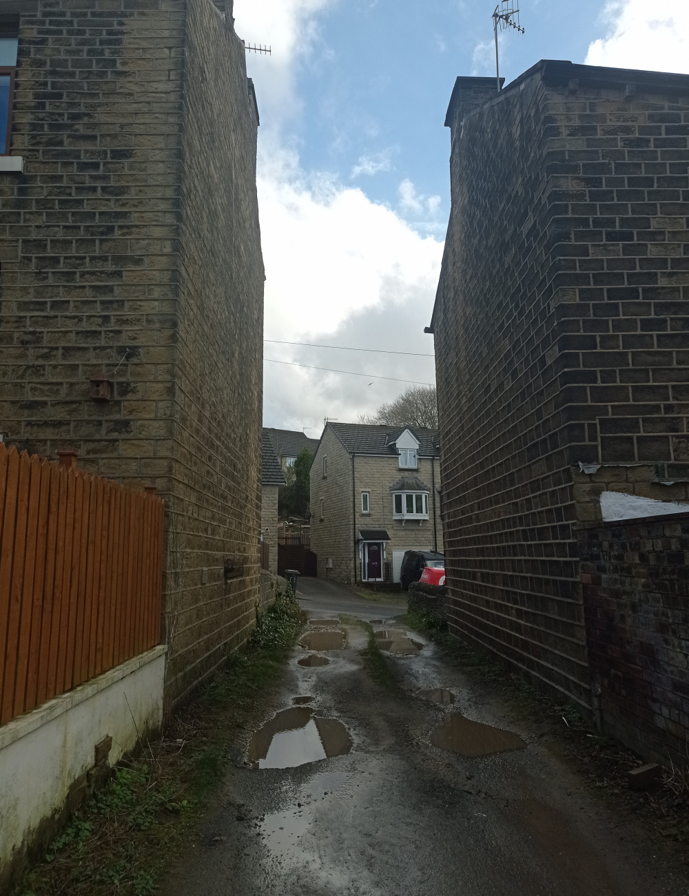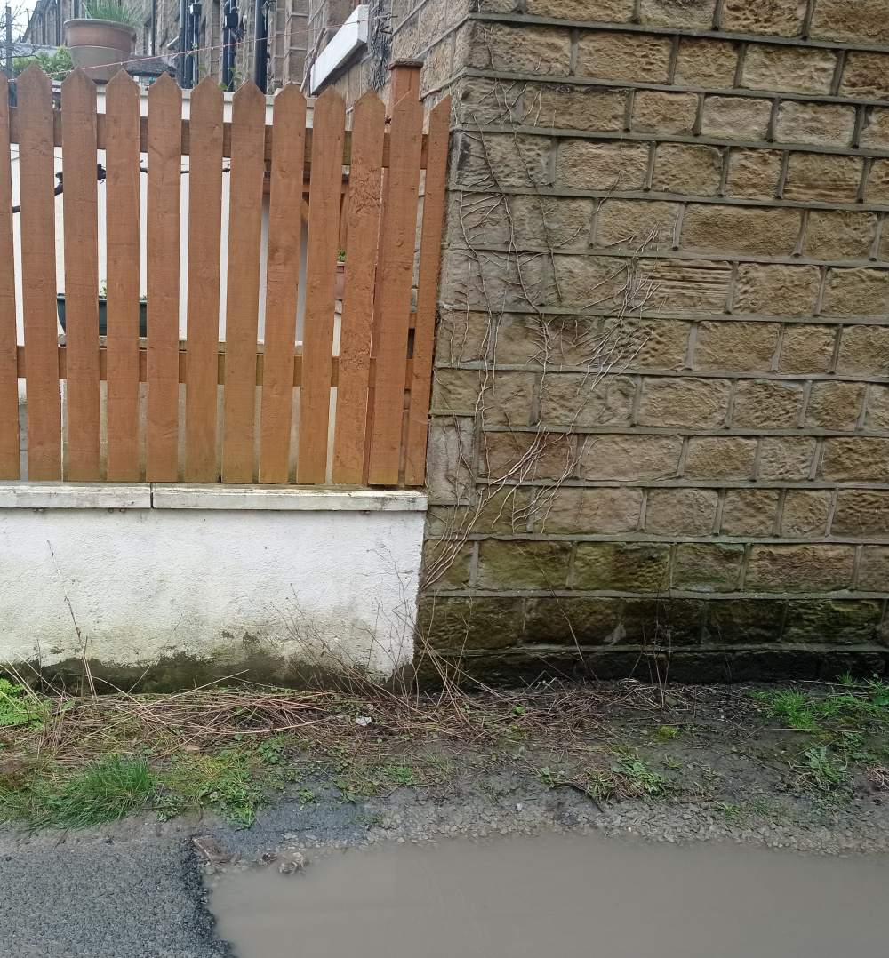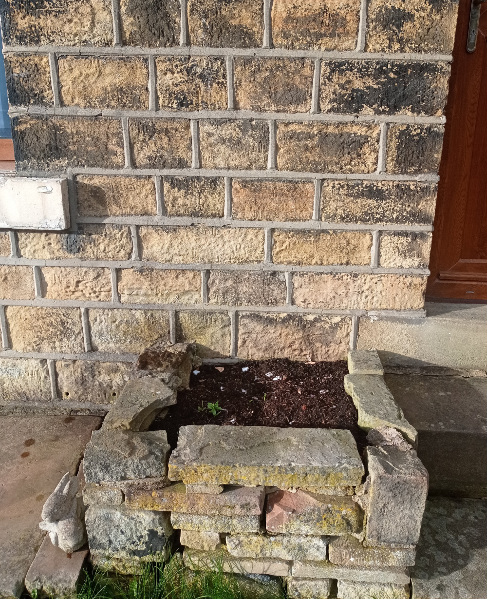 The wall faces West. There's another opposite, quite high, just over a car width away so most of the wall is in shade although that edge beside the fence gets some sun. I've added a photo of what the ground looks like. Taken during rain.