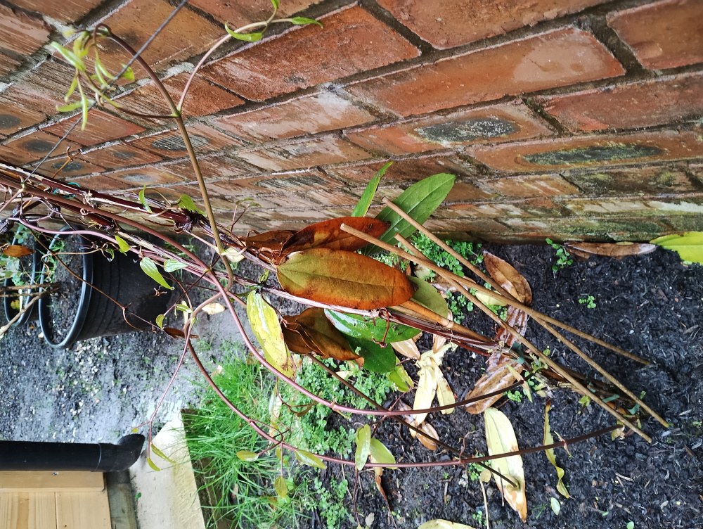 Gave the Clematis loads of water this week and it is growing from the bottom again. Probably have to prune the dead vines and have missed this year's blossom. Will keep an eye on the watering.