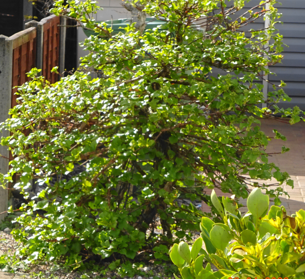 @Marlorena That's a new one for me, I am suprised it can hold it's self up but it obviously does! I recall seeing a huge one come crashing down due to it's weight probably 30ft tall. North facing but sheltered.