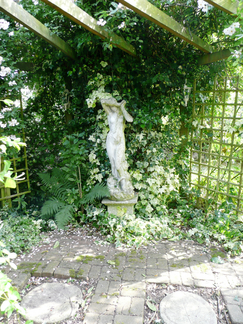 It's a dry and shady area, but the 2 types of ivy and ferns seem happy enough and makes a nice backdrop for the statue.