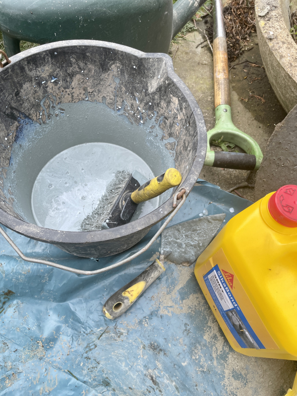 Before placing each stone I brushed the back of them with some SBR slurry to help make a good bond between the stone and mortar. This was a 50:50 mix of SBR and water, with cement powder stirred in...
