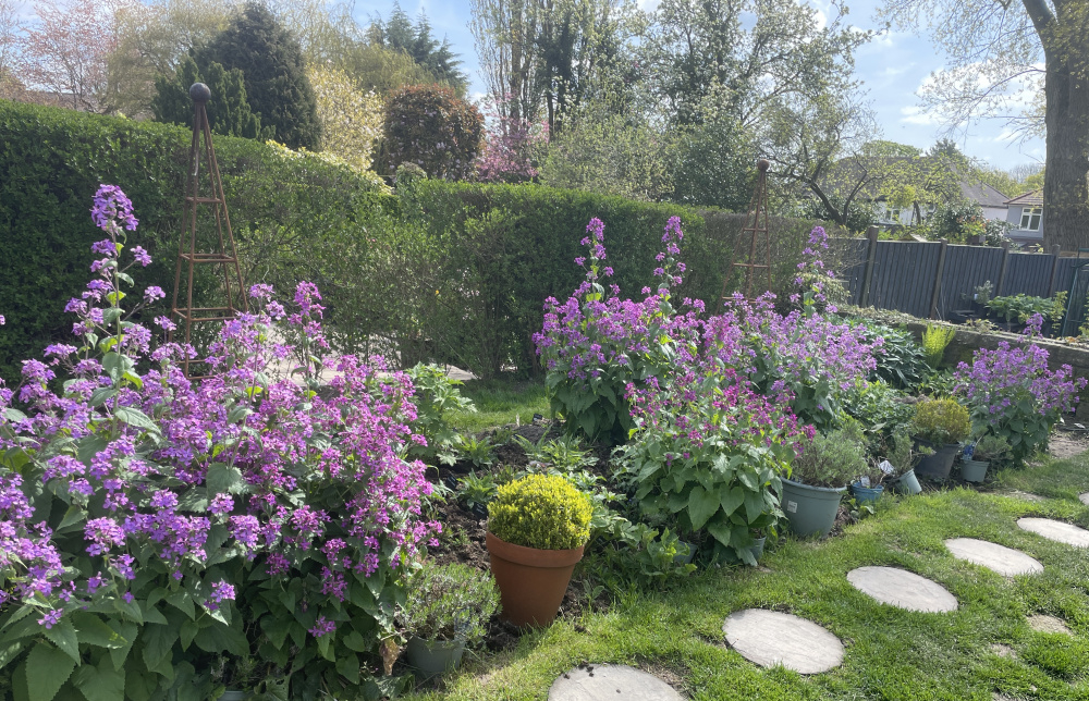 They are Honesty (Lunaria), I sowed them last year in the greenhouse and planted them out but they didn't flower as they are biannual. They emerged early this spring, shot up quickly and started flowering about mid April. I need to sow some more for flowers next year.
