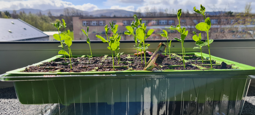 My sweet peas have grown to 2 to 3 inches on my window sill but I feel I have planted them in too shallow trays, do you think I should plant on in deeper pots or put them outside yet?