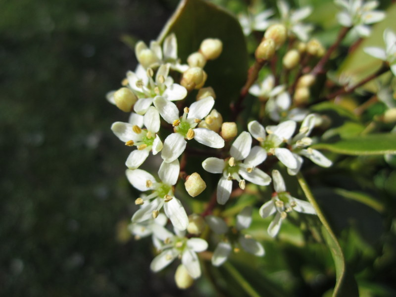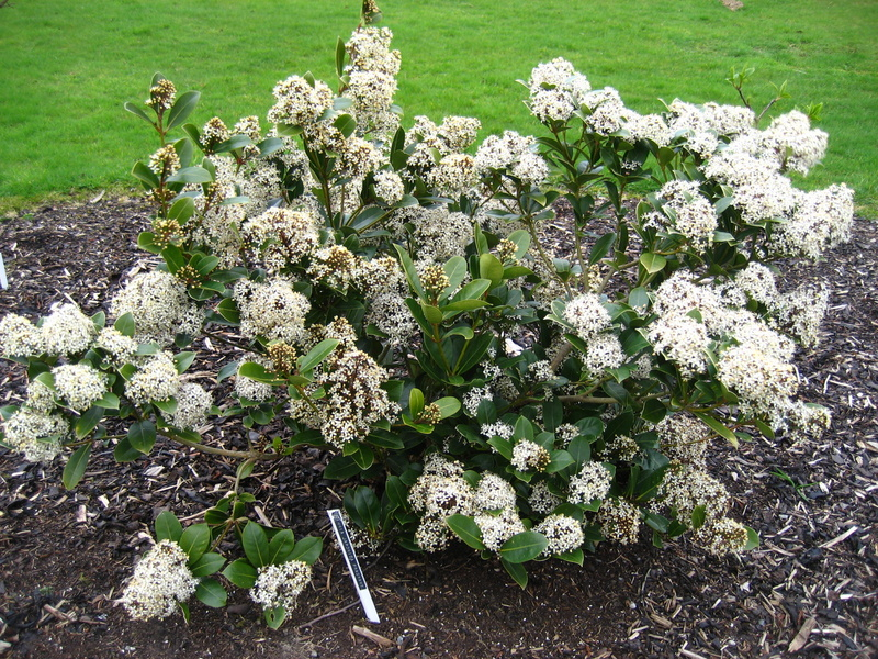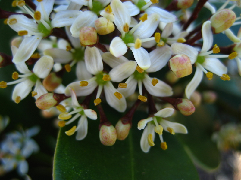 Pics below show Skimmia japonica fragrans...a male only evergreen shrub.