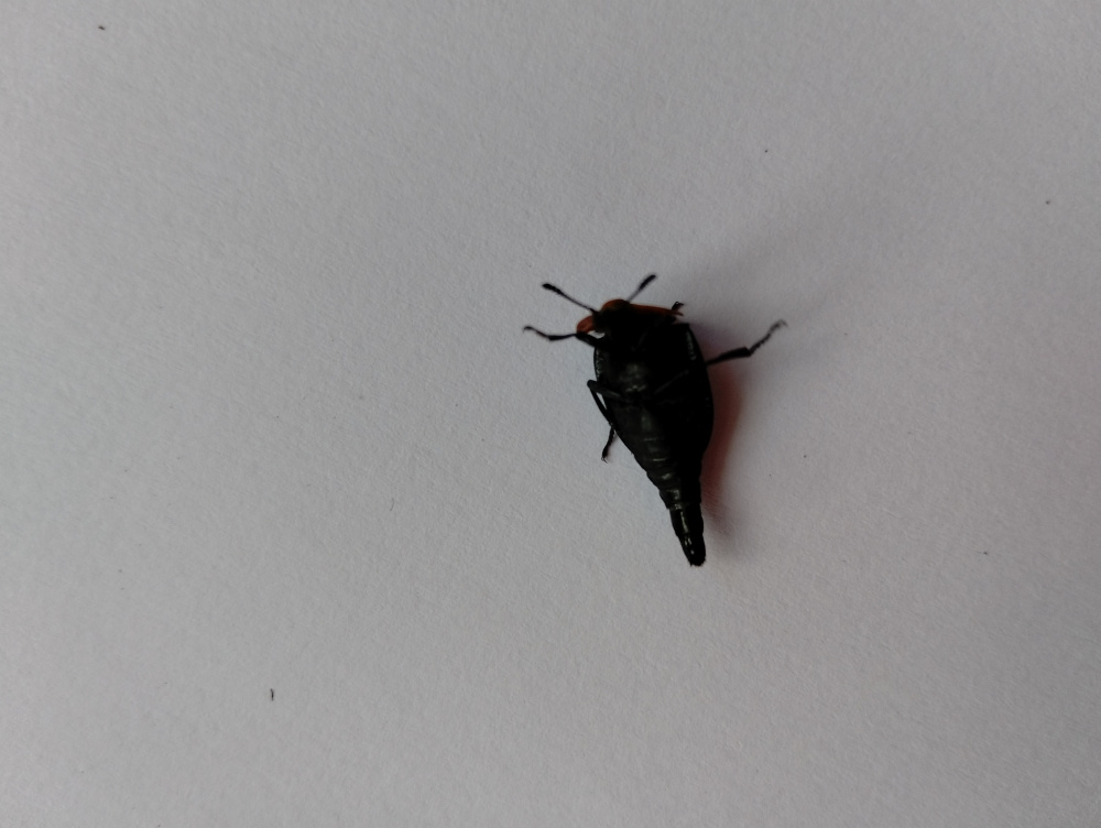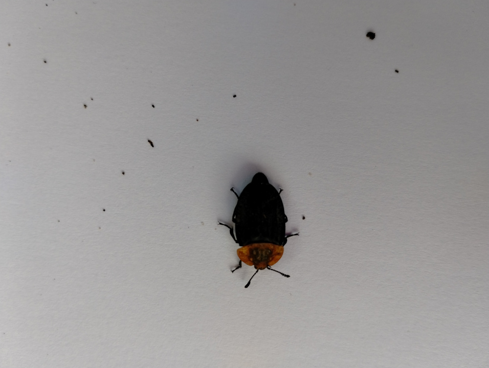 Found this wee fella in the greenhouse earlier. At first I thought it was a shield bug, but it doesn't have the triangular shape and broad "shoulders". There is an orange segment near it's head, and it has a pointy tail which it can poke in and out. This is easiest to see in the snap of it on it's back.