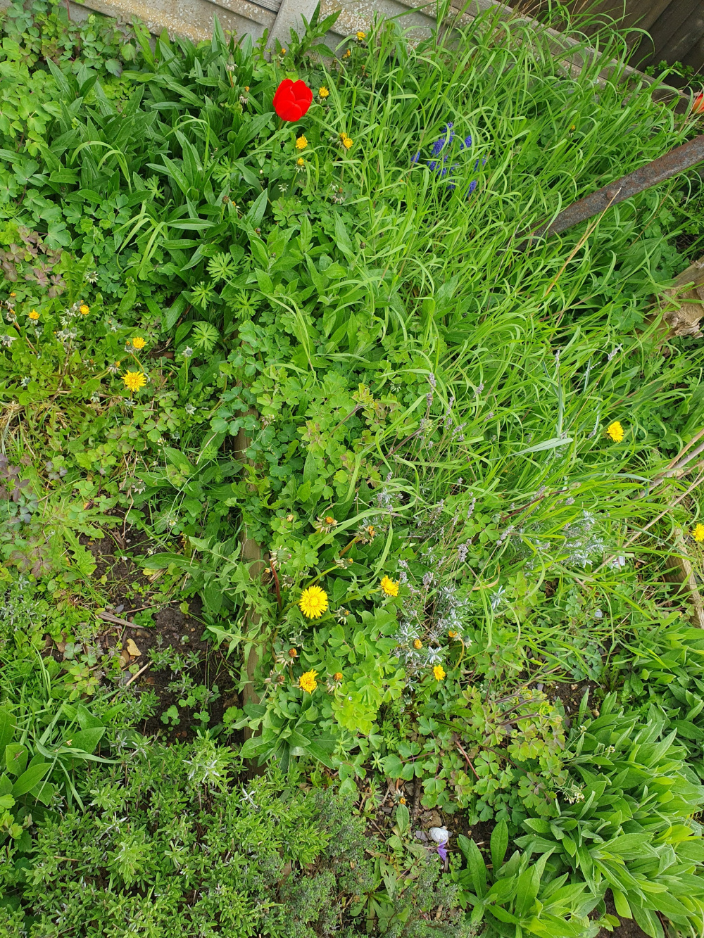There is a huge amount of cornflowers and granny bonnets which I love so never dig them up, but I think there is now too much of them for any other plants.