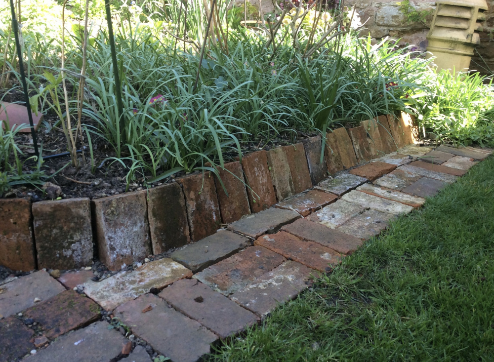 We have a small soil retainer of bricks set against bricks which I rather like. The planting of gone-over snowdrops scarcely impresses but for most of the summer it hosts erigeron karvinskianus