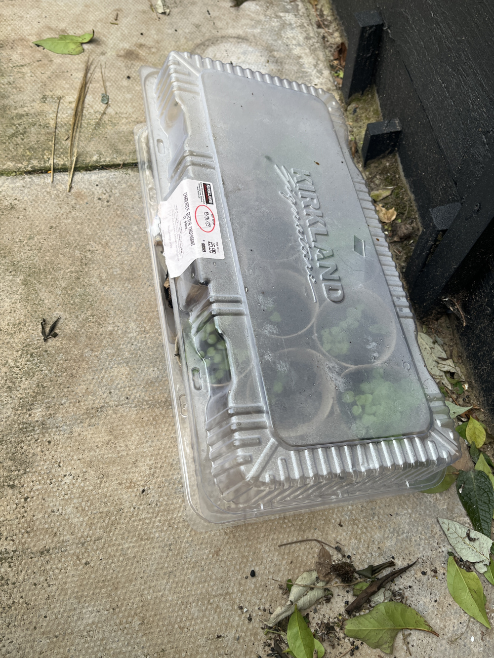 The croissants were lovely and now the container is protecting seedlings as a makeshift cloche: