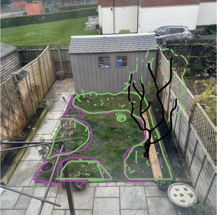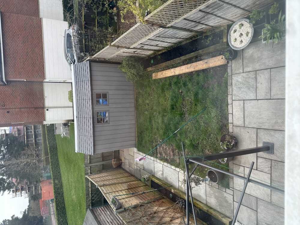 We have this patch of grass that I would really like to utilise. Perhaps another border? Pergola at the top near shed? It’s very shady up there. I have posted a pic of what it looks like now. Any ideas how I can e ncorporate some design while leaving existing g path as husband would go mental if I changed it